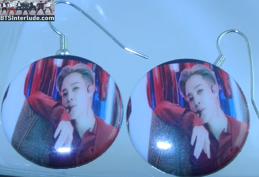 BTS EARRINGS BUTTON PARK JIMIIN 박지민 2 IN 1 FILTER RED SUIT PIERCED OR CLIP DANGLE DROP