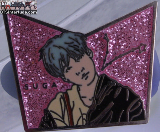 BTS PIN ENAMEL SILVER SUGA MIN YOONGI 민윤기 RUN MUSIC VIDEO MINT HAIR PINK GLITTER BADGE BUTTON