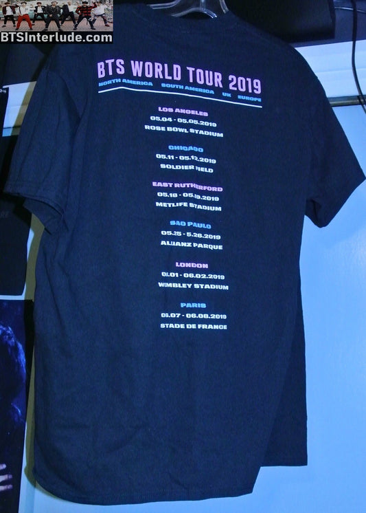 BTS SHIRT BLACK LARGE XL PHOTO 2019 WORLD TOUR LIST OF CITIES BACK JUNGKOOK V JIMIN RM J-HOPE SUGA JIN