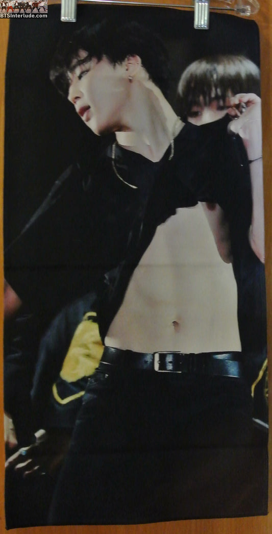 BTS SLOGAN FABRIC XL PARK JIMIIN 박지민 DOUBLE WIDTH BLACK SHIRT ABS TUMMY ETHEREAL FANSITE BANNER 2 SIDED LIMITED EDITION