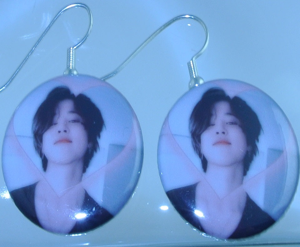 THIS IS A GORGEOUS BTS BUTTON PIERCED EARRINGS JIMIN PINK HEART V LIVE...THESE ARE BUTTONS AS WELL SO YOU CAN SEPERATE FROM EARRING AND WEAR IF YOU CHOOSE..WE CAN CHANGE FROM REGULAR SILVER TONE HOOKS TO STERLING SILVER FOR SMALL ADDITIONAL FEE...WE CAN ALSO MAKE THEM CLIPS IF YOU DON'T HAVE PIERCED EARS...EMAIL US IS YOU WANT ONE OF THOSE OPTIONS.......WE ALSO MAKE BUTTONS AND CAN MAKE AS MANY AS YOU WANT OF ANY PHOTO....WE HAVE 1" AND 1.5" BUTTONS AVAILABLE.....#7299