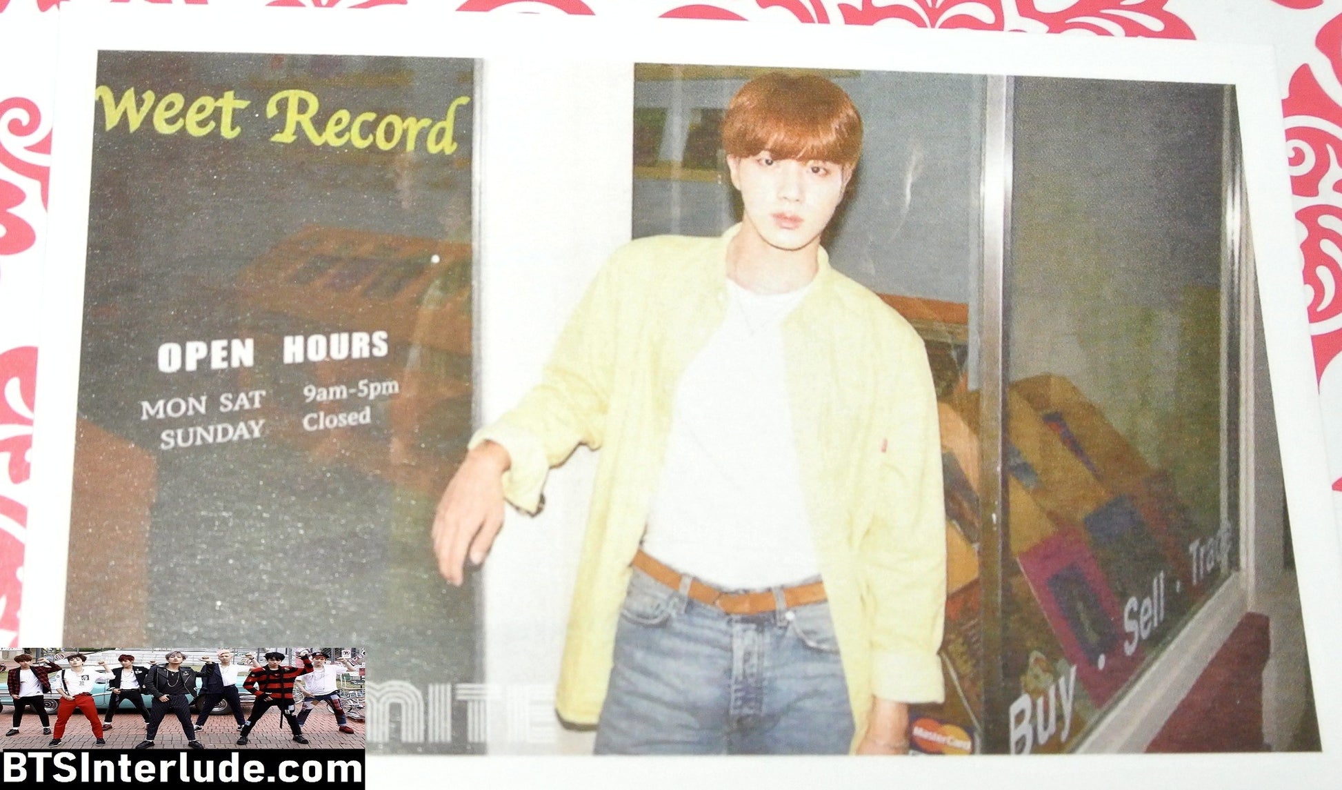 This is a gorgeous BTS Jin photocard from fansite......Dynamite outside store.......these are vintage cards so they may have some minor flaws or bumps etc as they are several years old.....so check pics carefully and ask any questions if concerned....#326