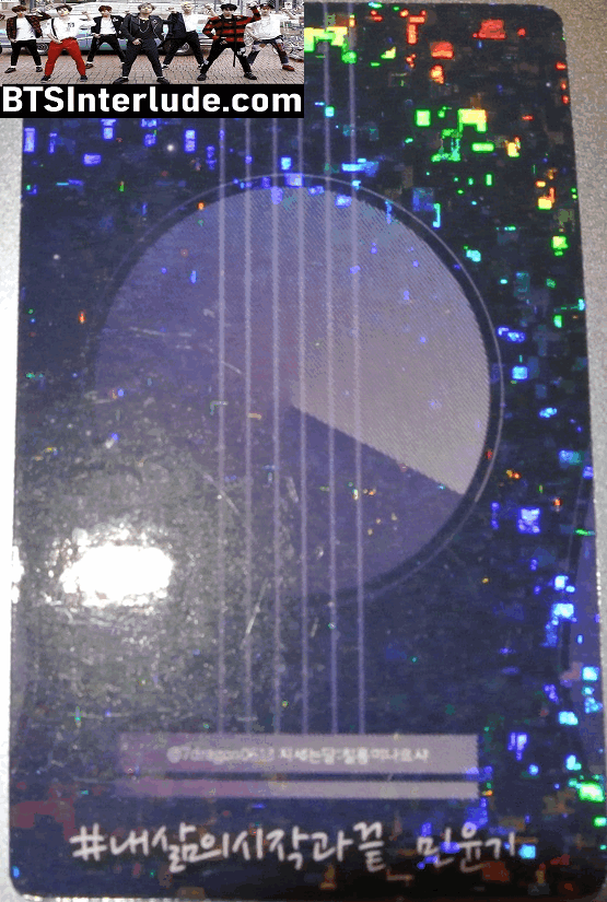 This is the BTS Suga glitter photocard from fansite....white shirt black flowers 7 Dragons 0613 fansite...these are vintage cards so they may have some minor flaws or bumps etc as they are several years old.....so check pics carefully and ask any questions if concerned....#4033
