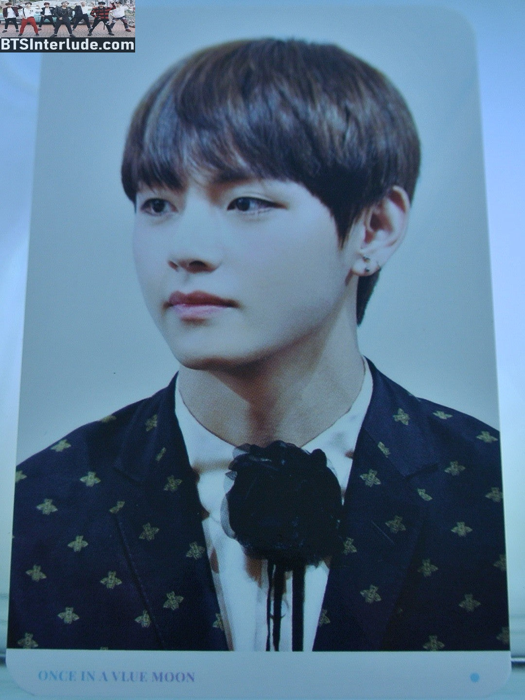 BTS PHOTOCARD FANSITE V KIM TAEHYUNG 김태형 BLACK JACKET FLOWER ASCOT VIA FANSITE ONCE IN A VLUE MOON PHOTO CARD