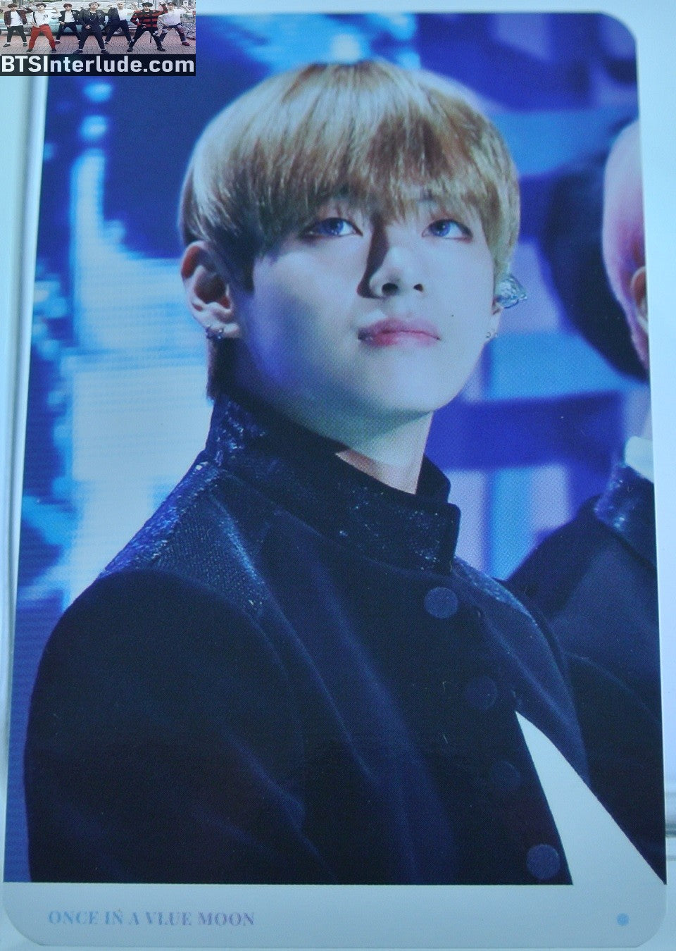 BTS PHOTOCARD FANSITE V KIM TAEHYUNG 김태형 BLACK JACKET VIA FANSITE ONCE IN A VLUE MOON PHOTO CARD
