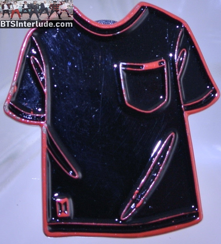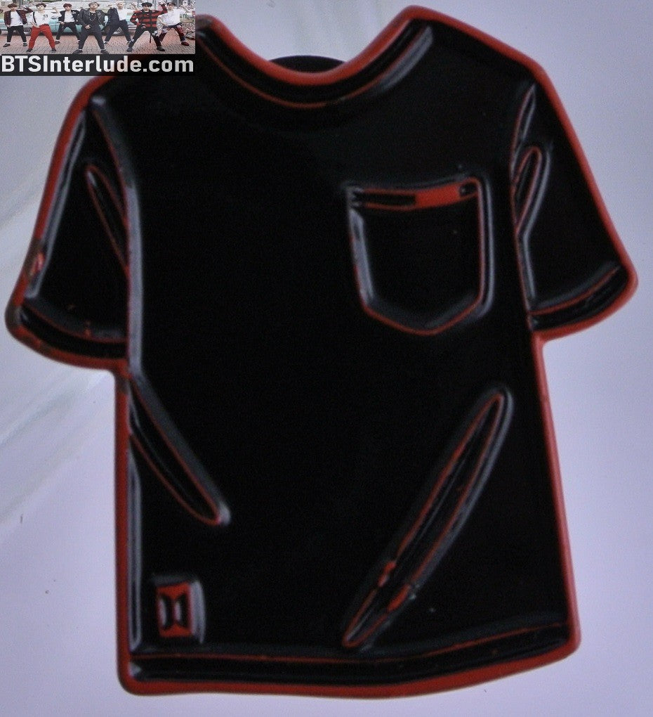 This is a beautiful orange soft enamel pin BTS black t shirt with pocket...from A Tiny Pin Club pins....little bit of chipping of paint on back...#6653