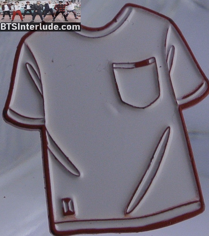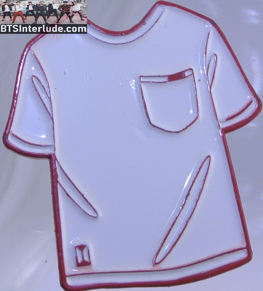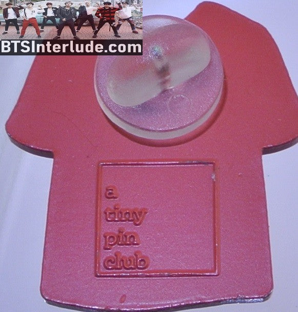This is a beautiful orange soft enamel pin BTS white t shirt pocket Love Yourself...from A Tiny Pin Club pins.....#6655