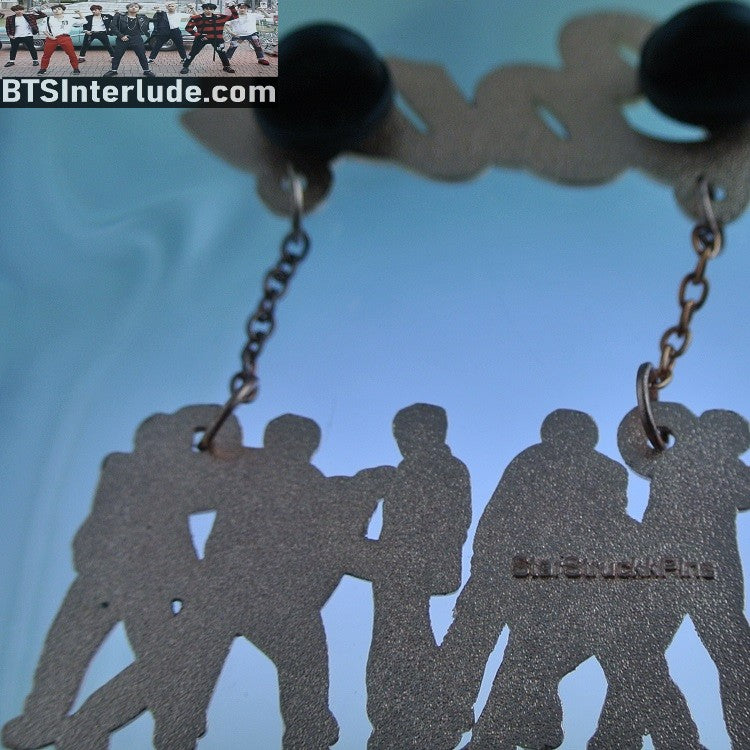 BTS (Bangtan Sonyeondan 방탄소년단) is a Korean pop band featuring: Jin (김석진 Kim Seok-Jin), Suga (민윤기 Min Yun-Gi), J-Hope (정호석 Jeong Ho-Seok), RM (김남준 Kim Nam-Jun), Jimin (박지민 Pak Ji-Min), V (김태형 Kim Tae-Hyeong) and Jungkook (전정국 Jeon Jeong-Guk)