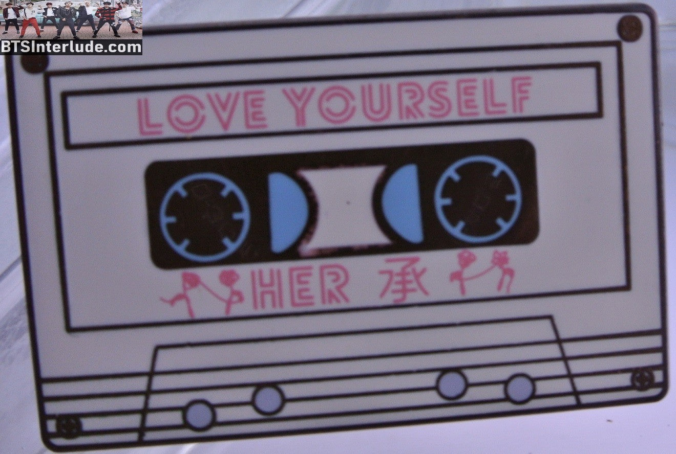 This is a beautiful rose gold copper hard enamel pin BTS theme white cassette tape Love Yourself Her....from Manderlai pins...#4832