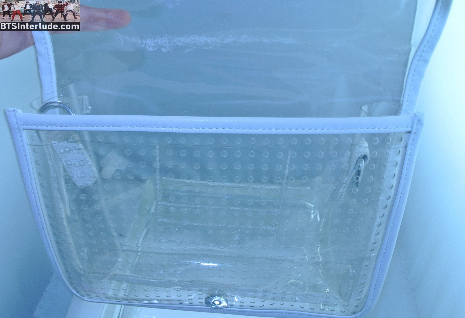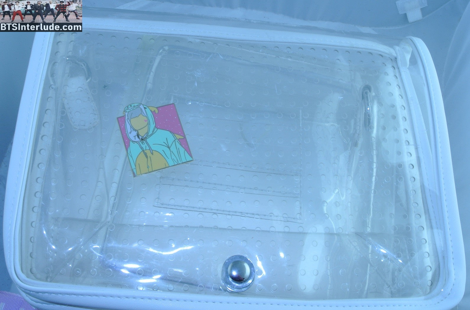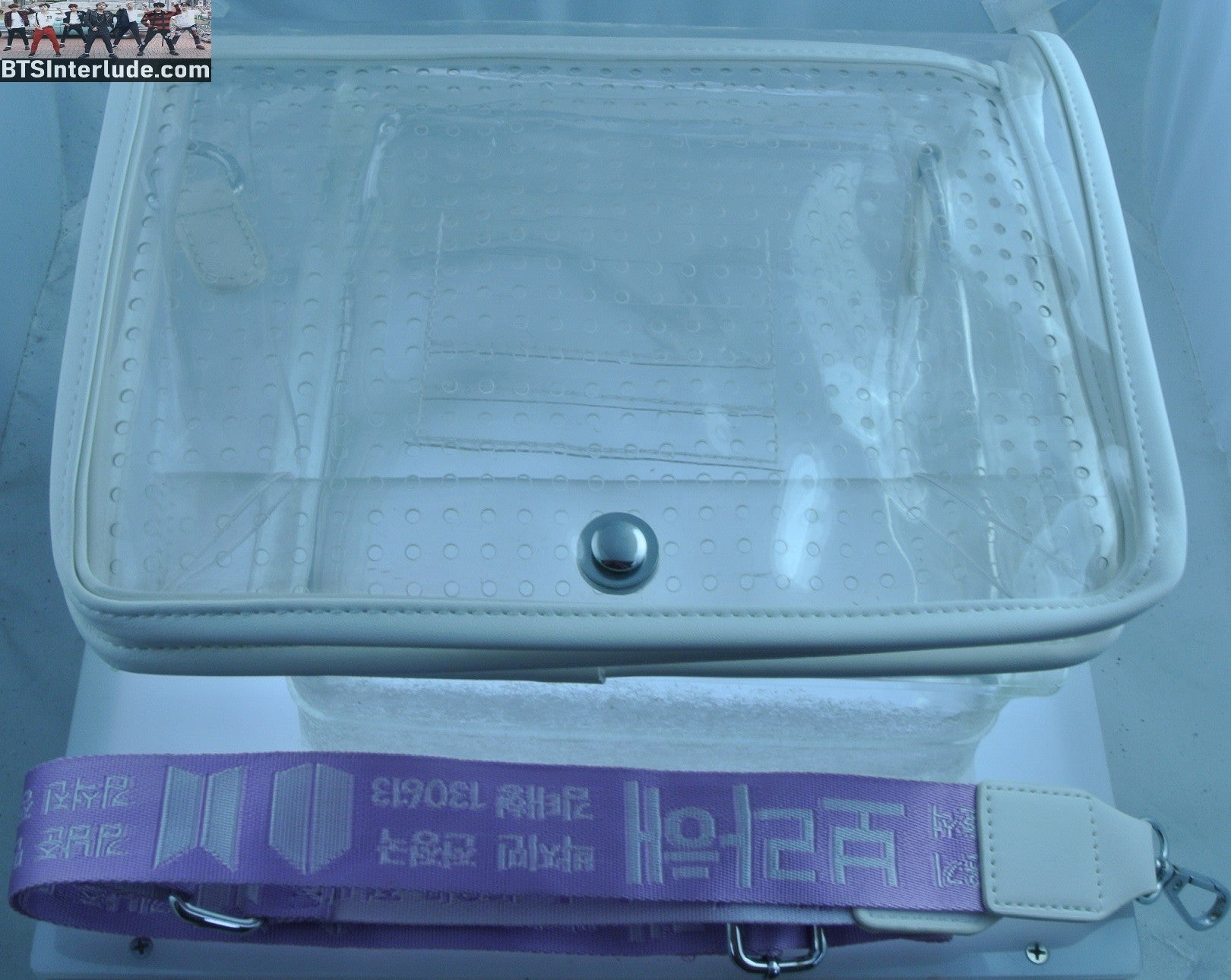 BTS PURSE CLEAR ITA ENAMEL PIN BAG PURSE CLUTCH CONCERT READY PURPLE WHITE BORAHAE ADJUSTABLE STRAP JUNGKOOK V JIMIN RM J-HOPE SUGA JIN