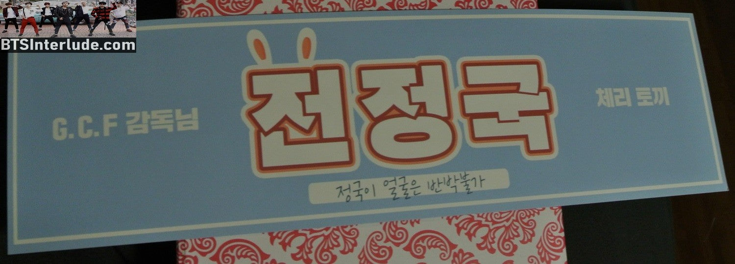 BTS SLOGAN CARDSTOCK JEON JUNGKOOK 전정국 2 SIDED FANSITE RED HAIR BLUE SHIRT BANNER SIGN