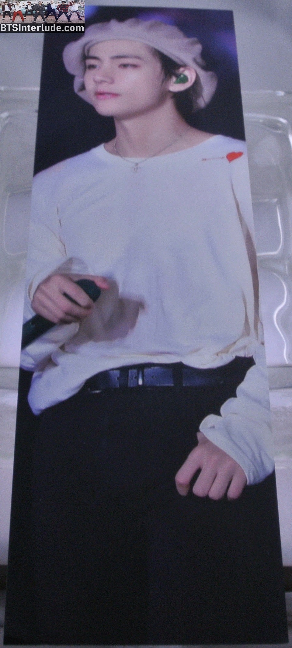 BTS SLOGAN CARDSTOCK V KIM TAEHYUNG 김태형 TAN BERET WHITE SHIRT FANSITE BANNER 2 SIDED LIMITED EDITION